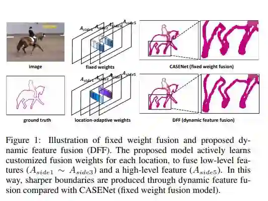 语义边缘检测旨在联合提取边缘及其类别信息,以实现领域中的高端应用,包括语义分割,对象识别等。DFF是第一个旨在学习自适应融合权重的研究工作,它以输入数据为条件,在SED研究中融合多层次特征,以促进和实现SED任务的最新技术。通过考虑高级和低级主干特征映射,可以改善位置自适应权重学习器。