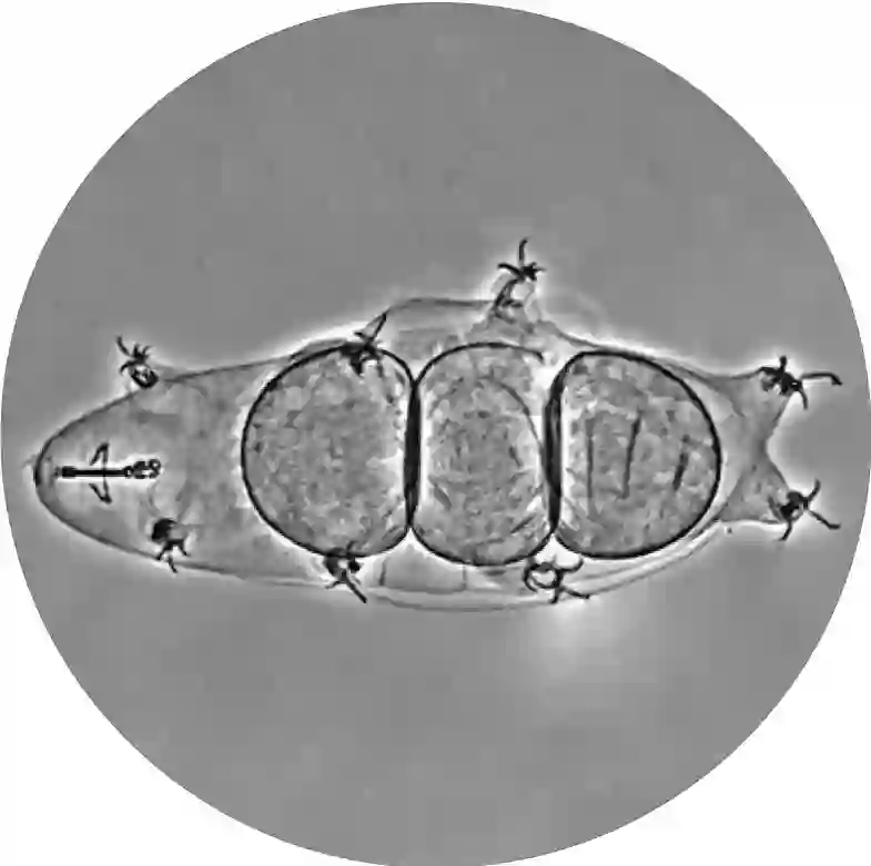 这些小家伙生活在淡水中,以藻类为食,也可以在苔藓上安家。它们名字里的“杜氏”来自法国生物学家费利克斯·杜雅尔丹(Félix Dujardin)。成年的杜氏高生熊虫大约有0.5毫米长,借助显微镜才能看清。
