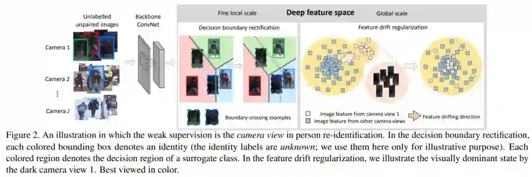 在获取人工标注的训练数据代价太高的现实下,使用非监督学习来识别每个行人不同的视觉特征具有很重要的意义。但由于如摄像头拍摄位置角度不同等状态差异,同一个体的照片都会存在视觉差别,给无监督分类学习带来了巨大困难。而本文就提出了能够利用这些不需要人工标注的状态信息(如摄像头位置或脸部拍摄角度标注)的弱监督学习方法,该方法使用状态信息优化了假定类别的决策边界,以及使用状态信息调节控制了识别特征的偏移。论文在Duke-reID, MultiPIE 和CFP数据集上进行测试,结果远优于其它现有方法,同时论文的模型和标准的有监督学习模型也进行了比较相较,并显示出相当的性能。文章代码可见https: //github.com/KovenYu/state-information.