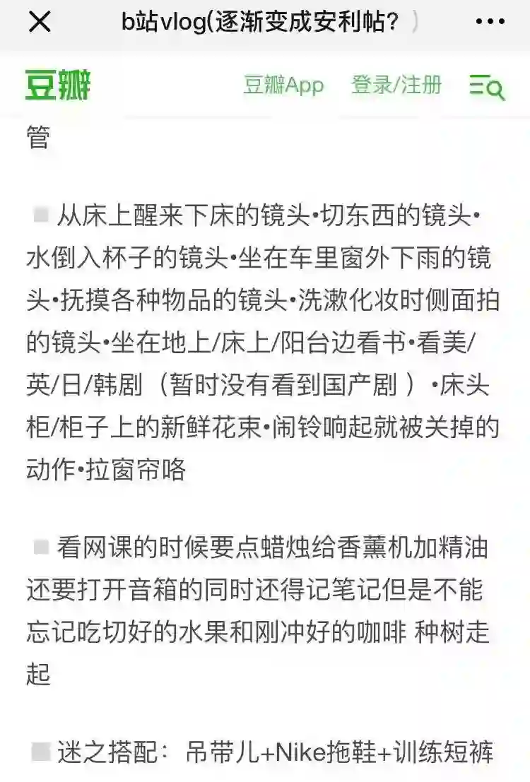 豆瓣上有人总结了Vlog的常见套路: