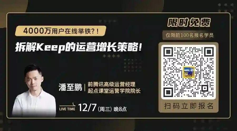 10月26日(下周三)晚八点,带你拆解Keep的用户运营之道,教你如何打造产品运营策略,实现用户增长!