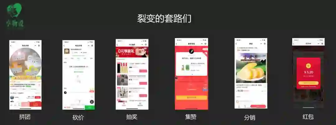 经历了很多变化,做 10w+ 的爆款文章、爆款 H5 刷屏 、群裂变、小程序裂变。现在小程序获取用户的方式更加高效,大家都去开始尝试做小程序裂变。