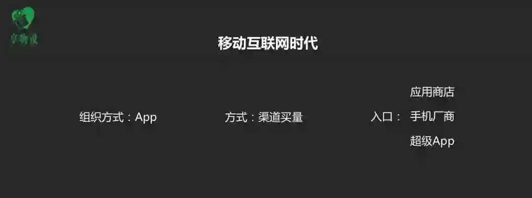 进入移动互联网时代,整个流量的玩法,就更加精细化、商业化。大家在切入口的第一时间,也做了商业化变现。因为获取用户的门槛提高了,要做 App、做手机,于是 BD 得到免费流量行不通了,要靠采买。