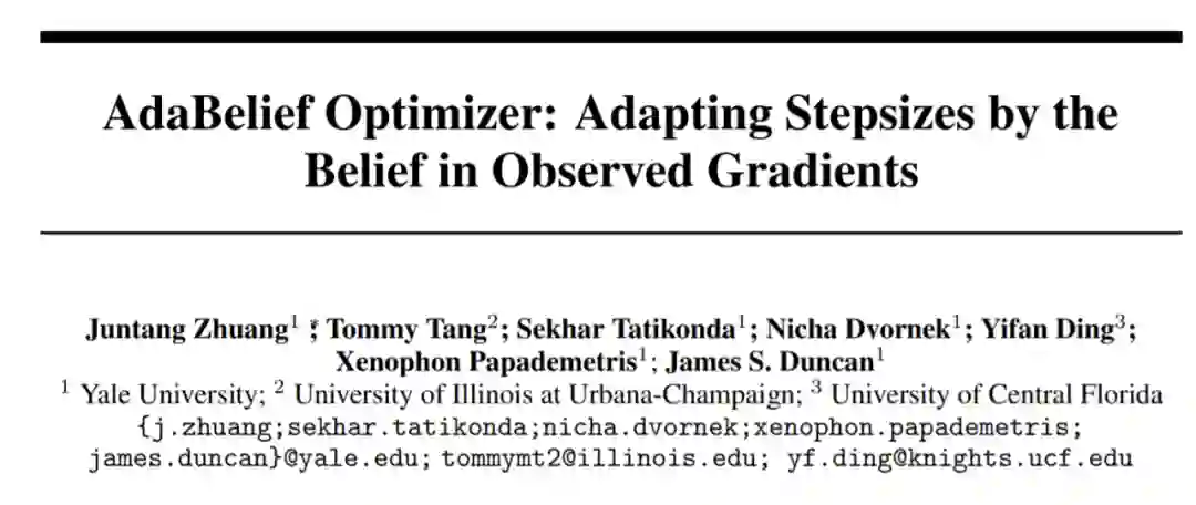 在 NeurIPS 2020 的一篇 Spotlight 论文中,来自耶鲁大学、伊利诺伊大学香槟分校等机构的研究者提出了一种名为「AdaBelief」的新型优化器,可以同时满足 3 个优点:自适应方法的快速收敛、SGD 的良好泛化性、训练稳定性。论文代码也已经放出。