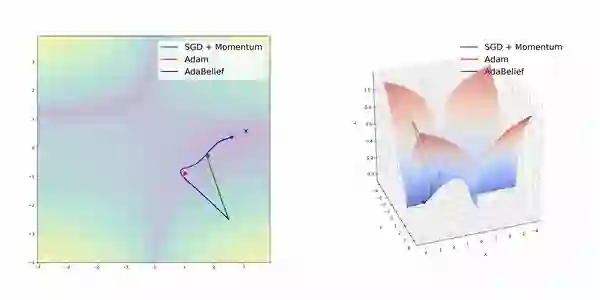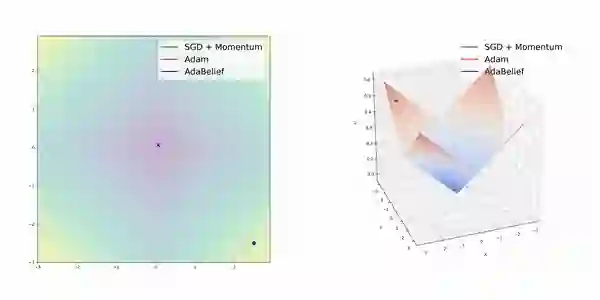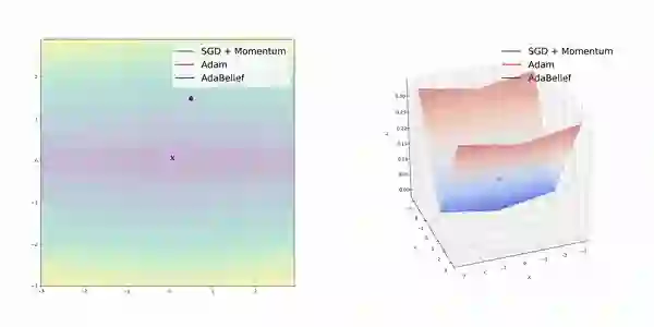 AdaBelief 根据当前梯度方向上的「belief」来调整步长,将嘈杂梯度的指数移动平均(EMA)当作下一步的梯度预测。如果观察到的梯度大大偏离了预测,那么就不信任当前的观察,采取一个较小的步长;如果观察到的梯度接近预测值,那么就相信当前的观察,并采取一个较大的步长。