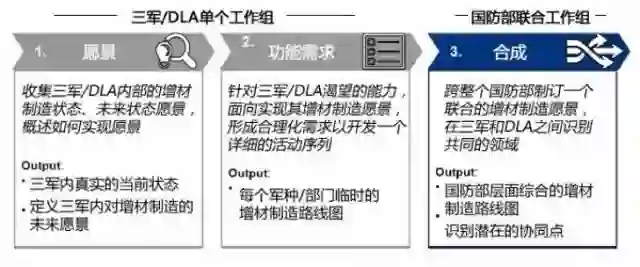 第三步,持续改进——在整个国防部内持续发展增材制造能力,在增材制造技术走向成熟时滚动更新增材制造路线图。
