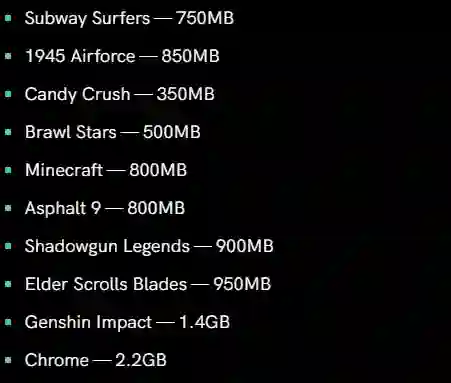 该博主选择了十款应用程序和游戏进行测试,少则占用 350MB,多则占用 2GB 内存。其中在安卓手机上,Chrome 浏览器可谓是一个内存大户,可以占用高达 2.2GB 的内存,比《原神》这样的游戏都多。