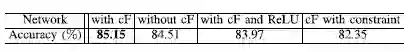 此外,我们还对 ConvFilter 层进行了四种不同的配置: (1) 两个级联卷积层;(2) 删除 convFilter 层;(3) convFilter 层之后接 ReLU 激活层;以及(4) convFilter 层中加入高通滤波器。下表2 显示了这四种配置相对应的模型性能,其中使用两个级联卷积层时模型的准确率最高。