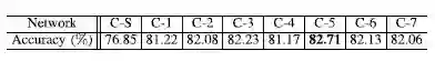 表1 模型的分类精度,其中 C 表示 CaffeNet,”C-S” 表示从头开始训练网络 CaffeNet,”C-N” 表示微调 CaffeNet 后的前 N 层网络,N 从1到7。