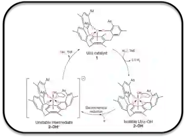 图9. 在均相三价铀[( (Ad, MeArO)3mes)UIII]催化剂下电催化H2O产H2的循环示意图