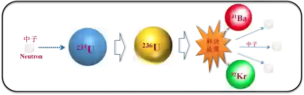 图4. 中子撞击促使铀-235产生核裂变示意图