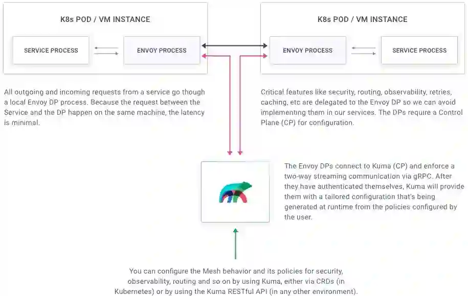 使用 Kuma,我们的主要目标是减少构建可靠的架构所必须编写和维护的代码。因此,Kuma 采用了挎斗代理模型,利用 Envoy 作为其挎斗数据平面技术。