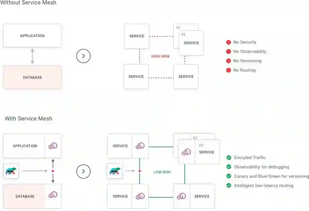到目前为止,服务网格一直被认为是架构现代化的最后一步,而在此之前,架构已经转换到容器或 Kubernetes。这种方法完全向后兼容。这使得服务网格的采用和业务价值只有在实现了其他大规模转换之后才能实现,而与此同时,这些转换可能会出错。