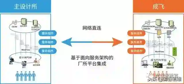 通过厂所间点对点的金航网连接,使得厂所间的协同模式可以采用系统集成模式,既能实现厂所系统间全三维数据模型的即时传递,同时也能符合安全保密及业务约束的条件下实现厂所系统平台数据传递、流程对接、互访互查等服务。
