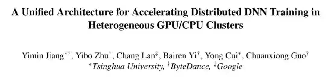 近年来 DNN 为计算机视觉、语音识别与合成、自然语言处理等领域带来了突破性进展。然而,训练这些 DNN 模型通常需要大量算力。大型公司一般会建设具备数千块 GPU 卡的大型训练集群,其核心资源是 GPU 机器,同时这些 GPU 机器也具备高端 CPU 资源。此外,也有一些仅具备 CPU 的机器,用于训练数据预处理和生成等任务。这些 GPU/CPU 机器通过高速网络连接,以加速分布式训练的通信。目前工业界主流的分布式训练是基于数据并行方式实现的,其中具有代表性的两种架构是 All-reduce 和参数服务器(PS)。