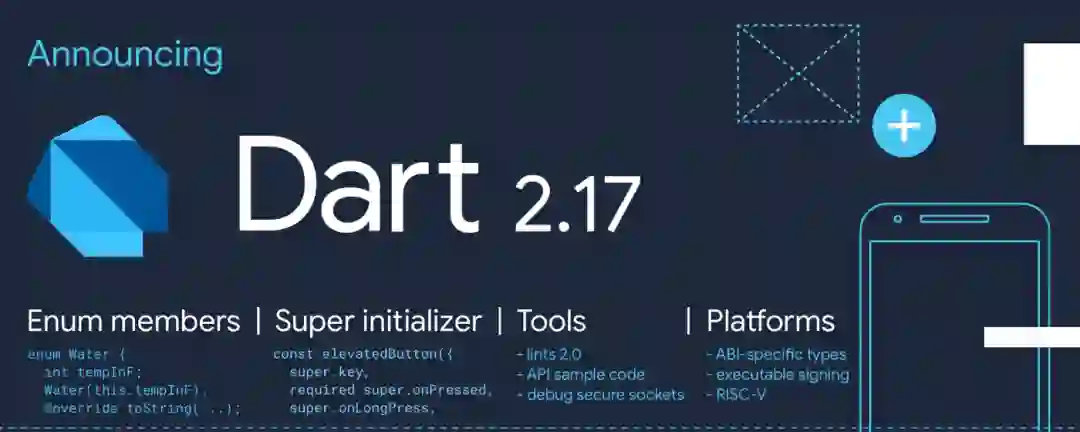我们在 Google I/O 大会上发布了全新的 2.17 版 Dart SDK。此版本构建于我们的核心主题之上,即领先的工作效率与平台可移植性。Dart 2.17 带来了新的语言特性,包括在枚举中支持成员变量、改进超类参数继承及提高命名参数的灵活性等。我们推出全新的主要版本 package:lints 来帮助大家根据最佳实践检查 Dart 代码。同时,我们还大幅更新了核心库的 API 文档,为其带来了丰富的代码示例。为了改善平台集成效果,我们在 Flutter 插件中提供了新的模版,以便使用 dart:ffi 与原生平台进行 C 语言的互操作,还开始为 RISC-V 处理器提供实验性支持,以及为 macOS 和 Windows 可执行文件提供签名。