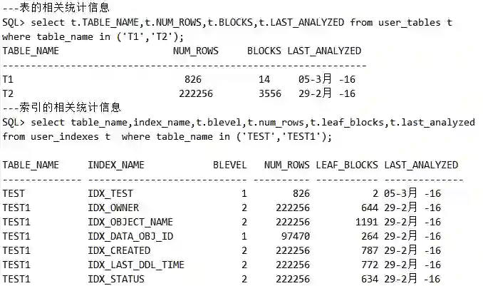 关于收集统计信息的方法比较多,可以是针对整个数据库的收集,可以是针对整个schema的收集,也可以是针对具体某个表和索引的收集。从操作实用性来看,主要的日常操作都是手动收集某表或者某索引的统计信息,方法如下: