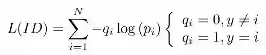 这也是从分类问题借鉴的一种trick,假设我们网络最后的分类为N,也就是ID的数量。且y为真实的ID标签,而pi为预测的ID分类。则其交叉熵损失为: