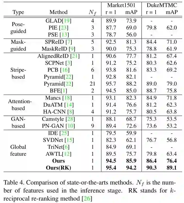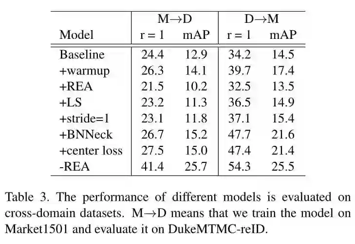 为了展示其鲁棒性,作者又在不同的数据域上进行测试,即使用Market1501训练好的模型在DukeMTMC数据集上验证,得到了如下结果: