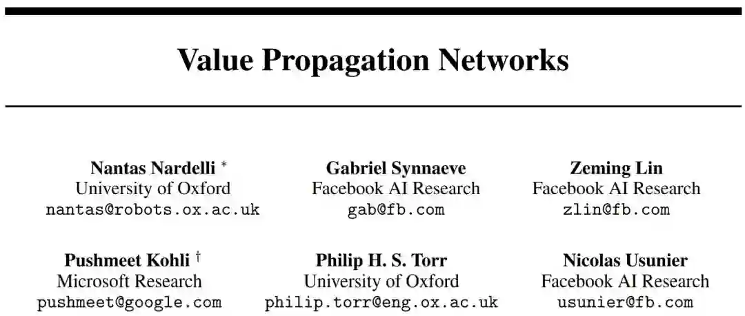 本文提出了一种基于价值迭代的参数高效差异化规划模块——价值传播网络(Value Propagation Networks),可以通过强化学习进行训练,用来完成未见过的任务。该模块能泛化到更大尺寸的地图中,并学习在动态环境中进行导航。此外,该模块能够在环境包含随机元素时学习进行规划,为各类交互式导航问题提供具有成本效益的学习系统,从而构建低级别、尺寸不变的规划器。