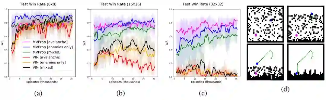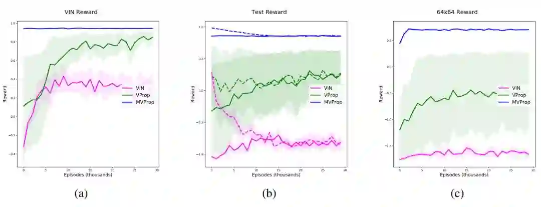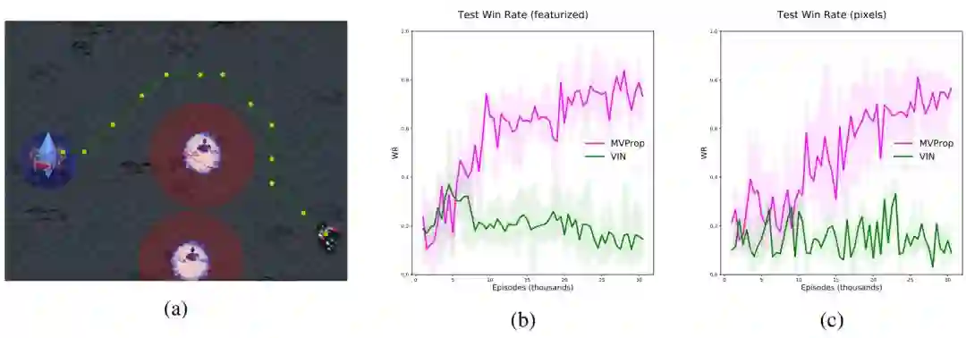 我们的主要贡献包括:(1)引入 VProp——这是一个网络规划模块,通过强化学习能成功学习解决路径搜寻任务,(2)展现了只在小图训练的基础上也具有的在大型未见过的地图中泛化的能力,(3)表明无论是在转换函数还是观察复杂度方面,我们的模块可以学习在具有比静态「网格世界」更复杂的动态环境中进行规划。