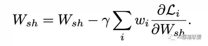 从上面的表达式可以看出,Wsh 的优化受到所有loss的影响,并且不同loss对于共享参数的影响可以使用权重w进行调节。那么优化思路自然而然可以为: