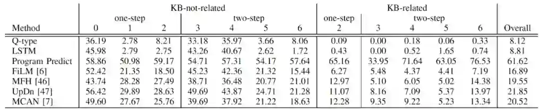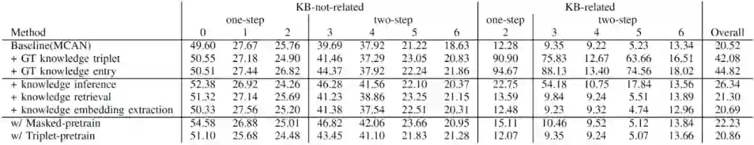 不同知识库编码方法与 MCAN 基线方法的准确率。