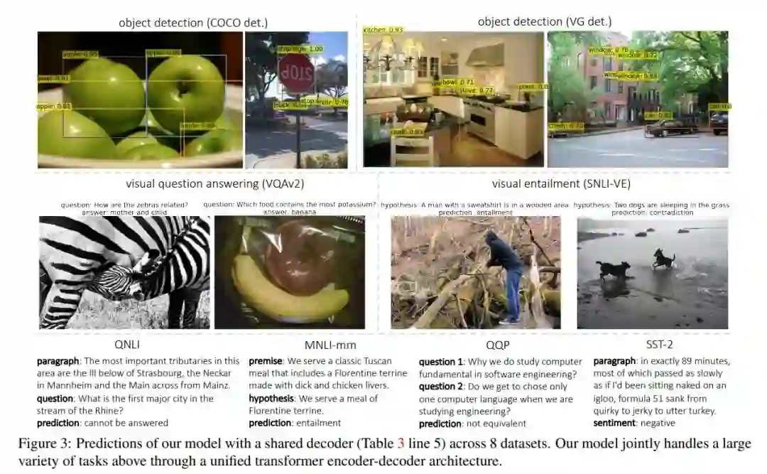 在八个数据集上 UniT 模型利用共享解码器的预测结果。