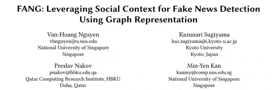 1、一作新加坡国立大学的《FANG: Leveraging Social Context for Fake News Detection Using Graph Representation》,