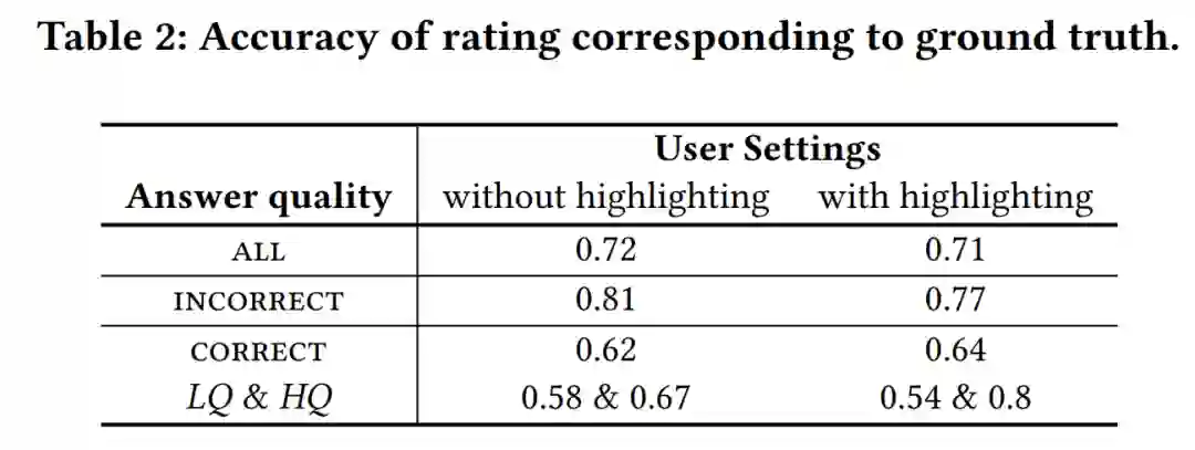 高亮显示帮助用户在保持准确性的同时可以更快地评估答案,特别是当高亮显示与注释类似时。