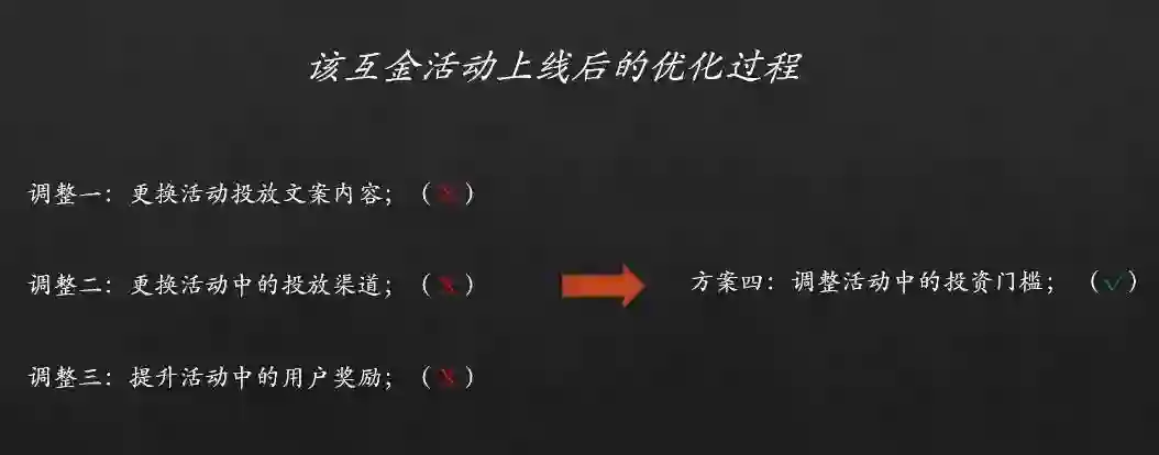 起初,此种提升奖励的做法,的确较大幅度地提升了新用户的累计投资额,但亮眼的数据难以长期持续,仅当逐级加码活动福利后,才能进一步提升。