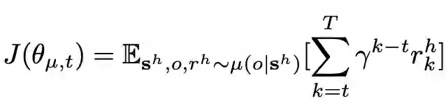 在优化 High-level policy 时,我们需要最大化预期累积回报,如下:
