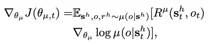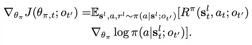 可以一同优化 High-level 和 Low-level 两段策略,High-level 的梯度是: