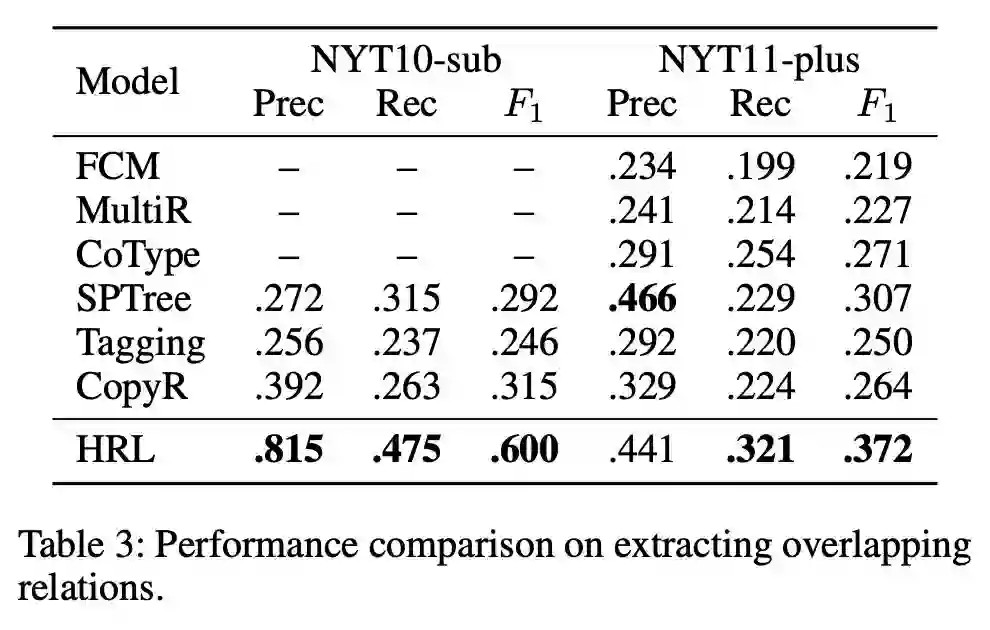 现有的关系抽取方法大多是先识别所有实体然后再确定关系类型。但是这类方法并没有考虑到实体与关系之间的作用。本文应用分层强化学习框架来增强实体提及和关系类型之间的交互,将相关实体视为关系的集合。此外,该方法还解决了抽取重叠关系(Overlapping Relations)的问题。