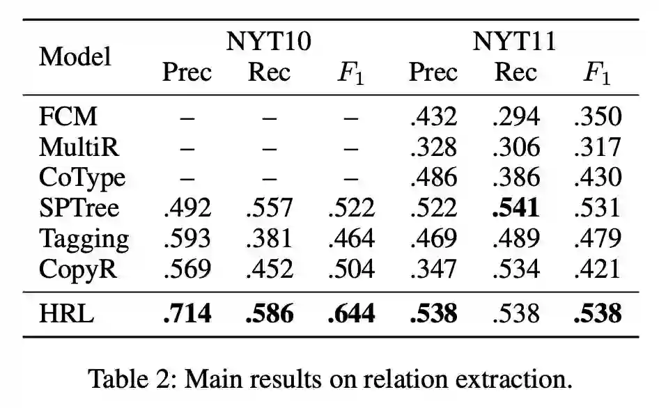 实验证明,该方法优于最先进的基线。目前,强化学习在 NLP 的应用较少,该工作为关系抽取任务带来了启发,事实证明,基于强化学习的关系抽取是可以成功的。