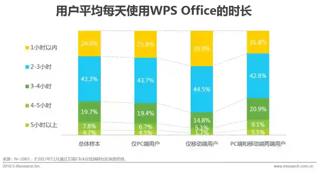 ◈用户停留时间长:用户对于WPS Office具有很高的使用黏性和较高的使用频率。用户每周都会花费一定的时间停留在WPS Office产品上。