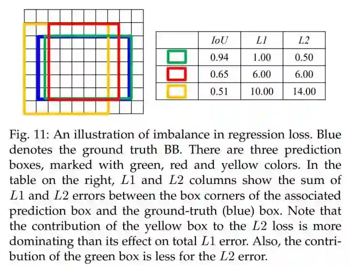 在训练过程中,不同正例对于 regression loss 的贡献是不相同的,对于那些 low-quality IoU bounding-boxes, 会产生很大的损失,L1 和 L2 loss 会被它们所主导: