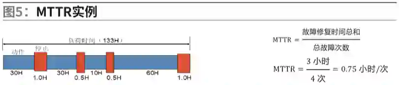 MTTR是故障发生到修复完成的平均时间,用于衡量一个系统是否易于维护保养的指标,MTTR数值越小,表明修复时间越短,系统易于维护,维护保养度高,MTTR实例如图5。