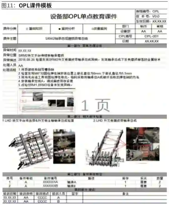 在设备管理中MTTR这个指标通常也是用来衡量员工技能的标准之一,也可以帮助我们确定员工培训方向。设备运维管理中设备培训始终贯穿其过程,最常见的一种培训方法是OPL(One Point Lesson),也就是俗称的一点通,如图11。