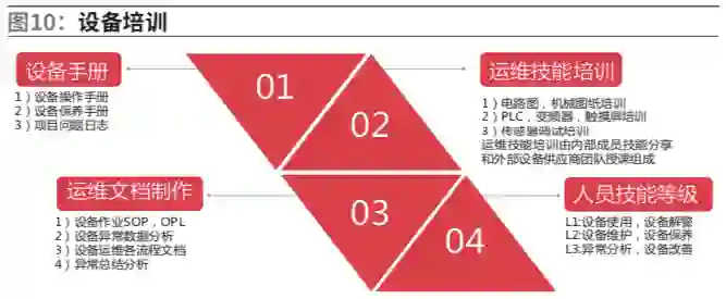 培训内容主要包括设备结构、工作原理、控制工艺等理论培训及设备操作规程、现场操作、设备的维护保养工作、设备安装调试、设备运行参数调整、设备故障排除、事故应急措施等内容,如图10。