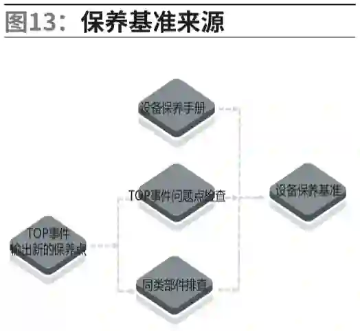 在设备管理初期,我们需要从设备供应商中得到保养手册,通过持续不断改善事件管理,不断完善保养内容和点检内容,修正设备保养点检的基准,如图13。