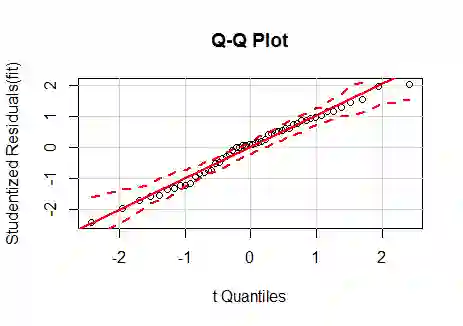 可以看到散点都分布在直线两侧,且没有明显偏离虚线区间的点,说明方程满足正态性的先验条件。