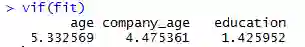 可以看出:age和company_age都引入方程时,方程存在多重共线性(两者的相关系数为0.87,上面已得知)。