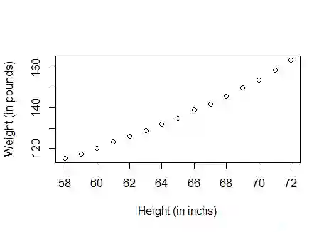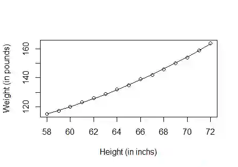 xlab = "Height (in inchs)", ylab = "Weight (in pounds)")