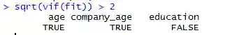 # 一般sqrt(vif)>2就表明存在多重共线性的问题