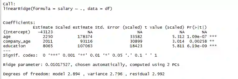 fit.ridge<-linearRidge(salary ~ ., data=df)