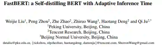 本文介绍的是 ACL 2020 论文《FastBERT: a Self-distilling BERT with Adaptive Inference Time》,论文作者来自北大、腾讯以及北师大。