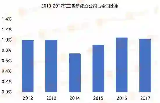 可真涨得不多,即使在创业顶峰的2015年,东三省所有的新成立公司总数,都不到200家。