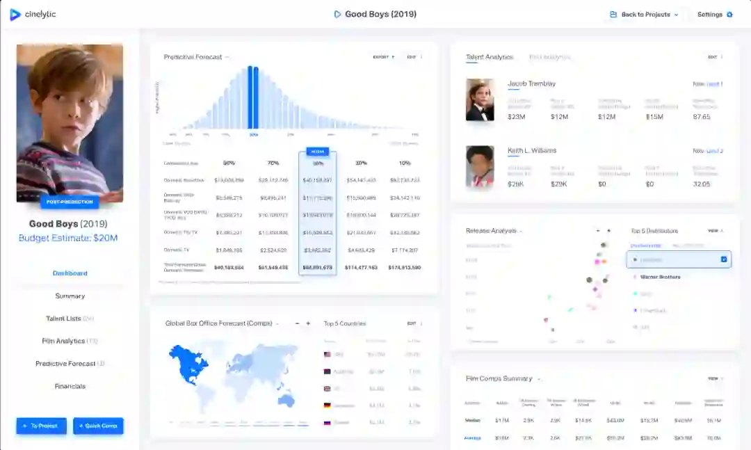 但Cinelytic只是一个缩影,随着算法越来越成熟,一大批基于大数据的预测公司纷纷成立,例如比利时的ScriptBook、以色列创业公司Vault都可以提供类似预测分析。