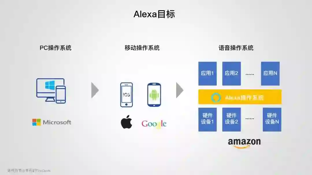 2015 年,Echo 横空出世,以极快地进入智能家居市场,从点到面地爆发。通过精准的产品定位、闪电式的市场策略、开放的生态以及投资布局,建立极高的竞争壁垒。得用户者得天下,Amazon 目标只有一个,就是打造下一代基于语音交互的操作系统。